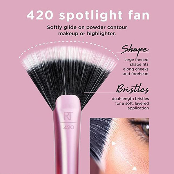 - حاوي 1 عدد براش بادبزني مناسب پودر زني و هايلايتر