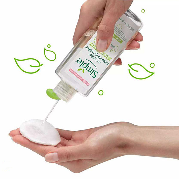 - مقداری از میسلار واتر آبرسان سیمپل را روی پد پنبهای بریزید.