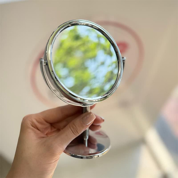 از طرفی در طراحی آینه *3 پایه دار کوچک رومیزی نارسیس، از پایه استفاده شده که استفاده از آن را بسیار آسان تر کرده است. اکثر آینه های آرایشی پایه ندارند و به همین دلیل شما مجبورید آن ها را با یک دست نگاه دارید که منجر به کاهش تمرکز شما در هنگام آرایش کردن خواهد شد؛
